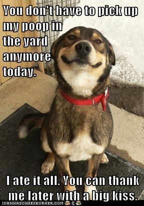 You Don T Have To Pick Up My Poop In The Yard Anymore Today I Ate It All You Can Thank Me Later With A Big Kiss Cheezburger Funny Memes