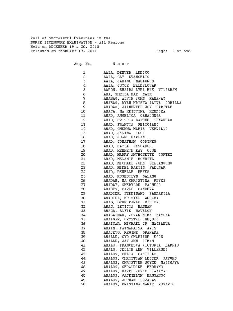 Roll Of Successful Examinees In The Nurse Interaksyon